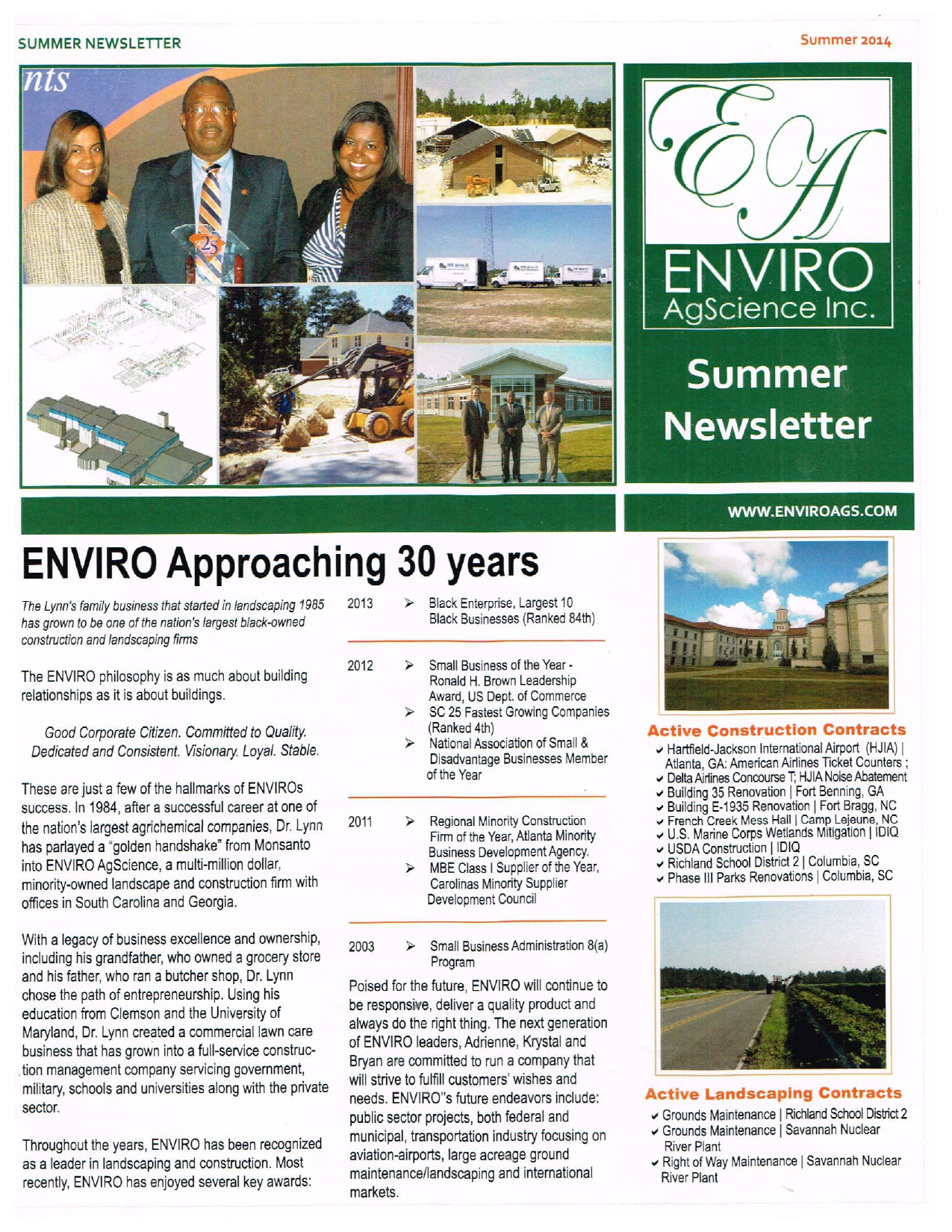 Dr. Lynn established ENVIRO AgScience in 1985, which has grown into the largest African American-owned landscape and construction firm in South Carolina.