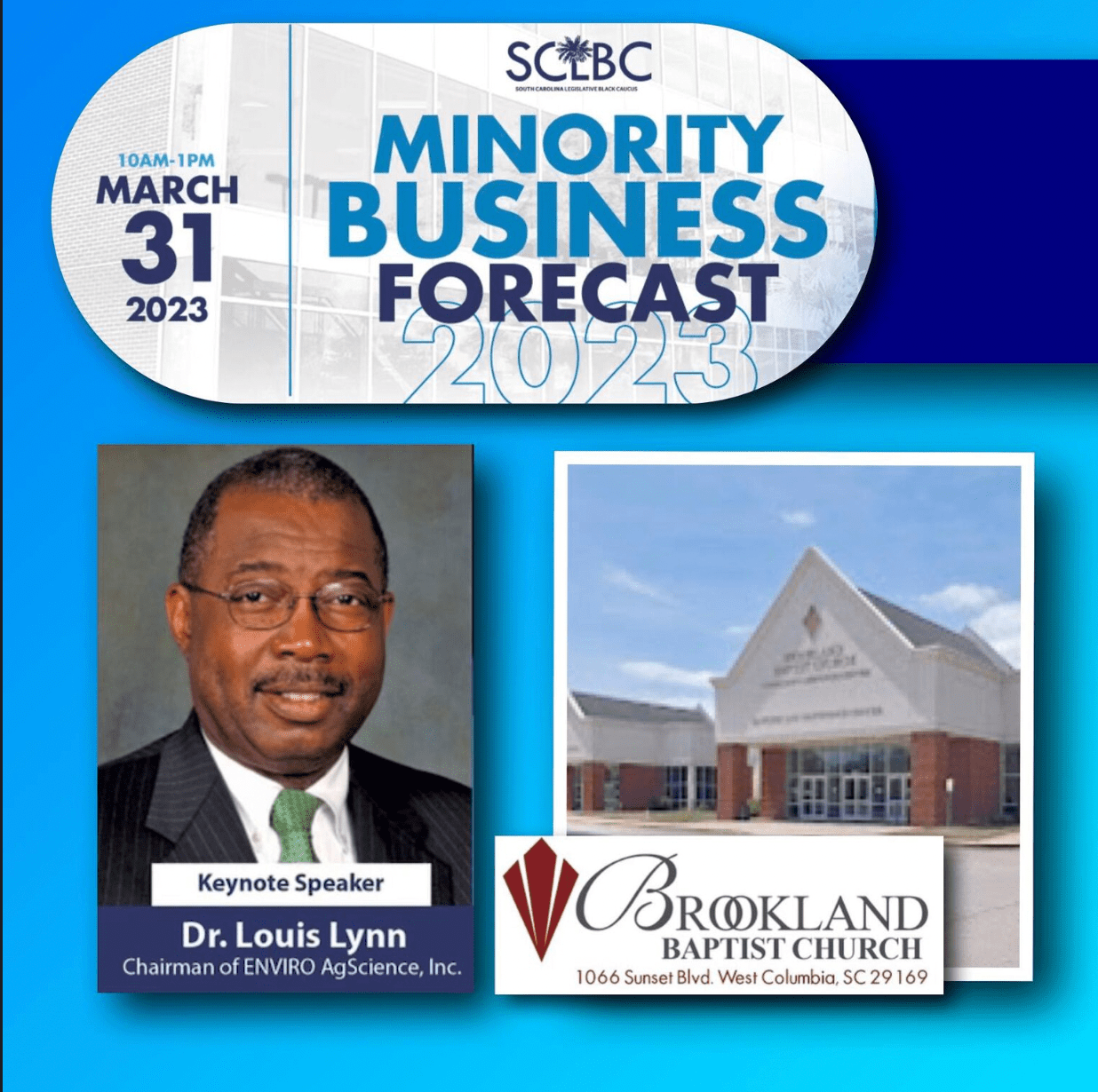 On March 31, 2023, Dr. Louis B. Lynn, Chairman of ENVIRO AgScience, Inc. and long-time Clemson University Trustee, delivered the keynote address at the 3rd Annual SCLBC Minority Business Forecast at Brookland Baptist Church in Columbia, SC.
